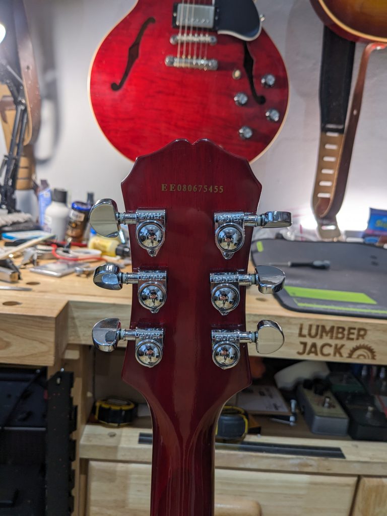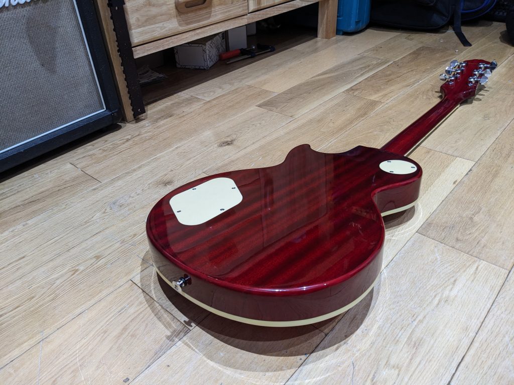 This guitar has had a full refurbishment and full setup, cleaning all parts and making various small adjustments to lower the action and make the guitar sing, this included a fretboard condition, pots & switch being cleaned, and re-strung with a new set of D’Addario XL Nickel Wound Strings (9-42) gauge.