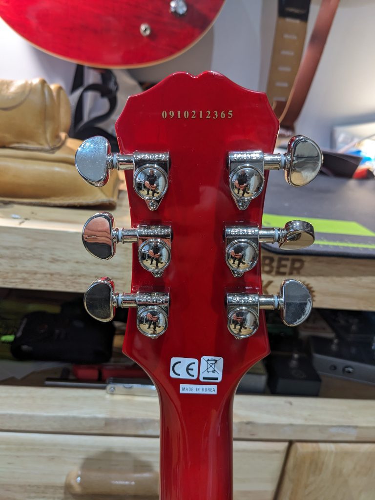 The Les Paul is an iconic guitar used by many guitar heroes over the years. This ‘case queen’ is a perfect example of the beautiful, expertly constructed, Epiphone Les Paul. This guitar was made in the Unsung Plant in Korea in October 2009.